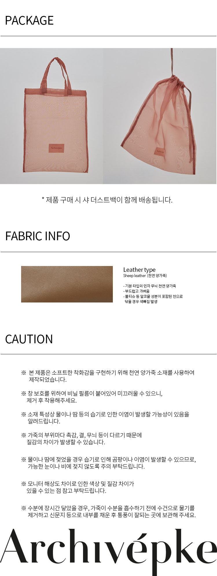 소재외피: 양가죽 100% 내피: 폴리에스터 90% 스판덱스 10% 창재료: 합성고무 100%