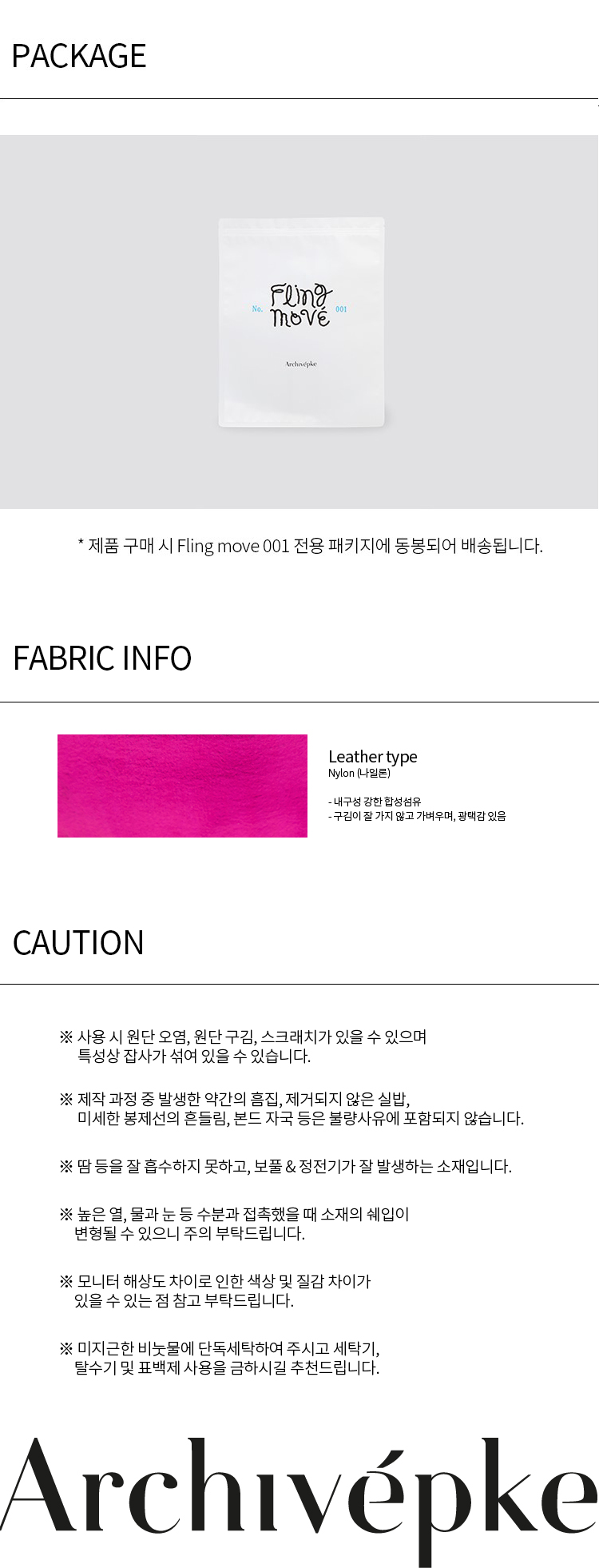 | 소재 | 겉감,안감: 나일론 100% |
