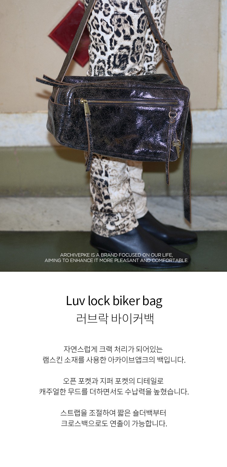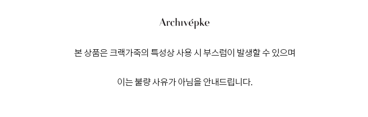 | 소재 | 외피: 양가죽 크랙타입 100% / 내피: 폴리에스터 100% / 스트랩: 양가죽 크랙타입 100% |