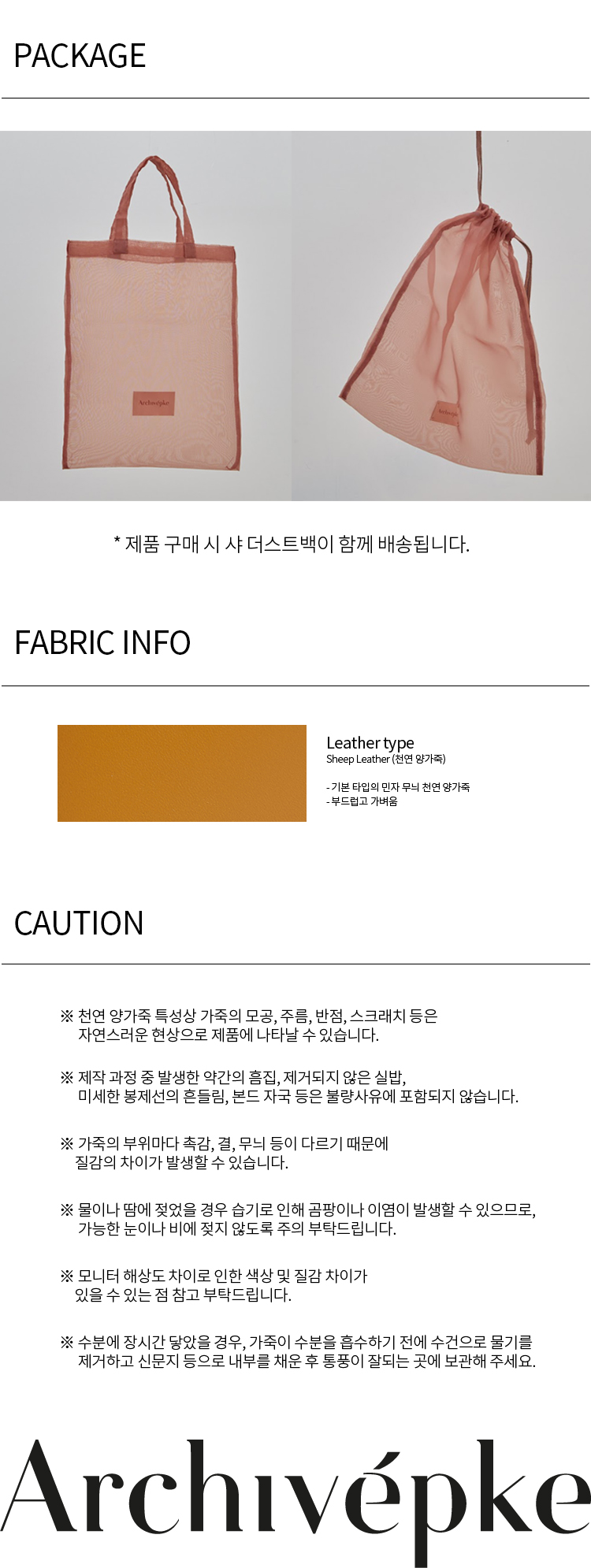 소재 | 외피: 양가죽 내피: 폴리에스터 50% 나일론 50% 스트랩: 합성가죽 |