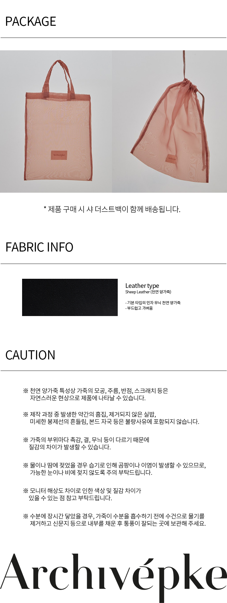 | 소재 | 외피: 양가죽 내피: 폴리에스터 50% 나일론 50% 스트랩: 합성가죽 |