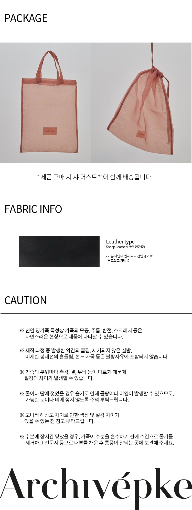 | 소재 | 몸판: 천연양가죽 / 스트랩: 합성가죽 |