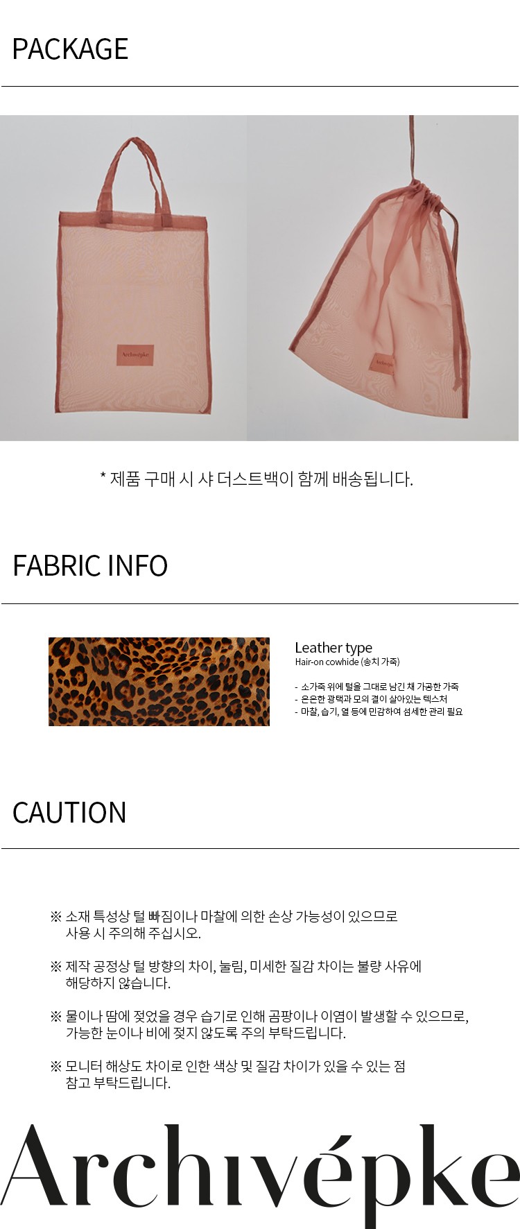 소재 | 외피: 송치가죽 100% 내피: 폴리에스터 100% 트림: 합성가죽 100% |