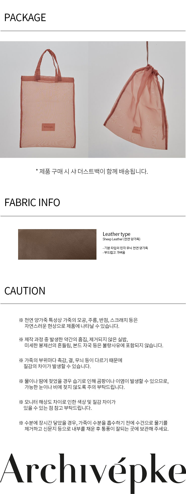 소재외피: 양가죽 100% 내피: 면 50% 폴리에스터 50% 트림: 합성가죽 100%