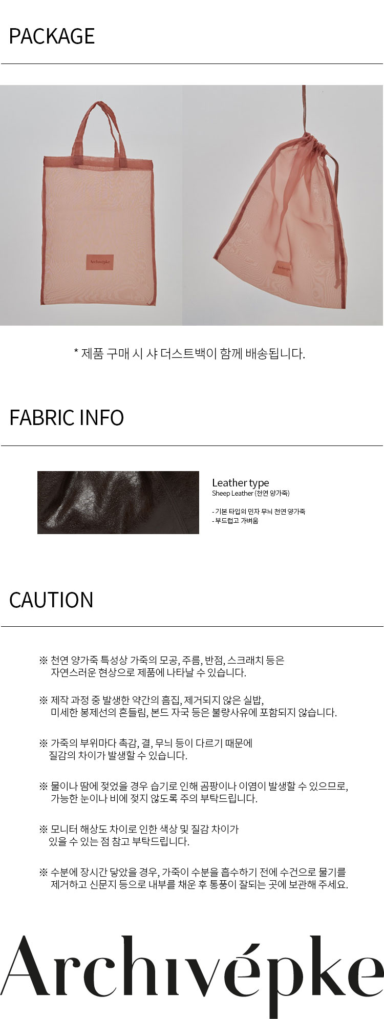 | 소재 | 외피: 양가죽 100% 내피:폴리에스터 95% 스판덱스 5% |