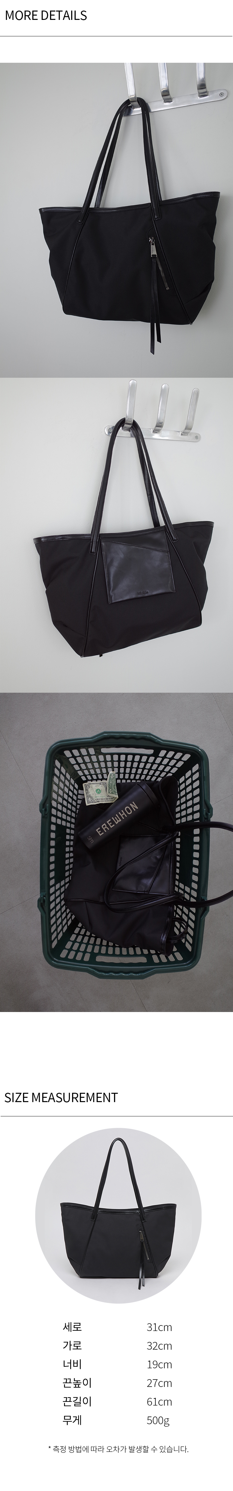 | 소재 | 외피: 나일론 100% / 스트랩: 합성가죽 100% |